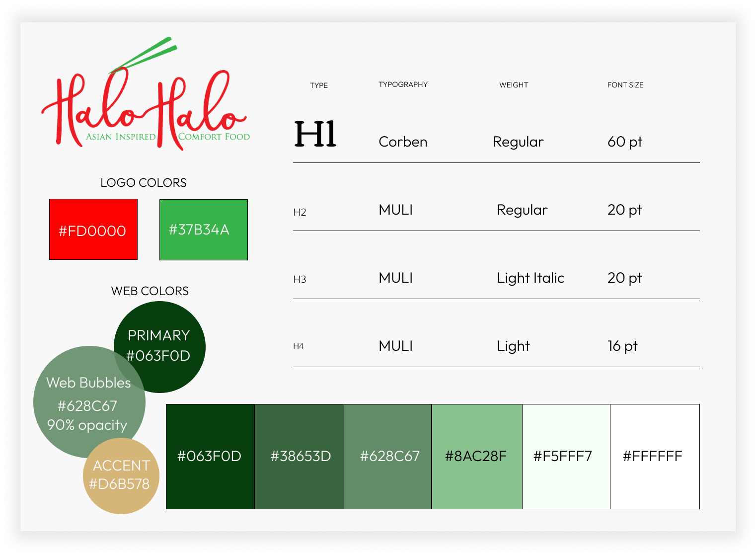 Challenge: Halo Halo Food Cart had a pre-existing style guide which exhibited some vagueness, prompting the owner's request for a simpler and refreshing approach to be conveyed in their menus + online presence.