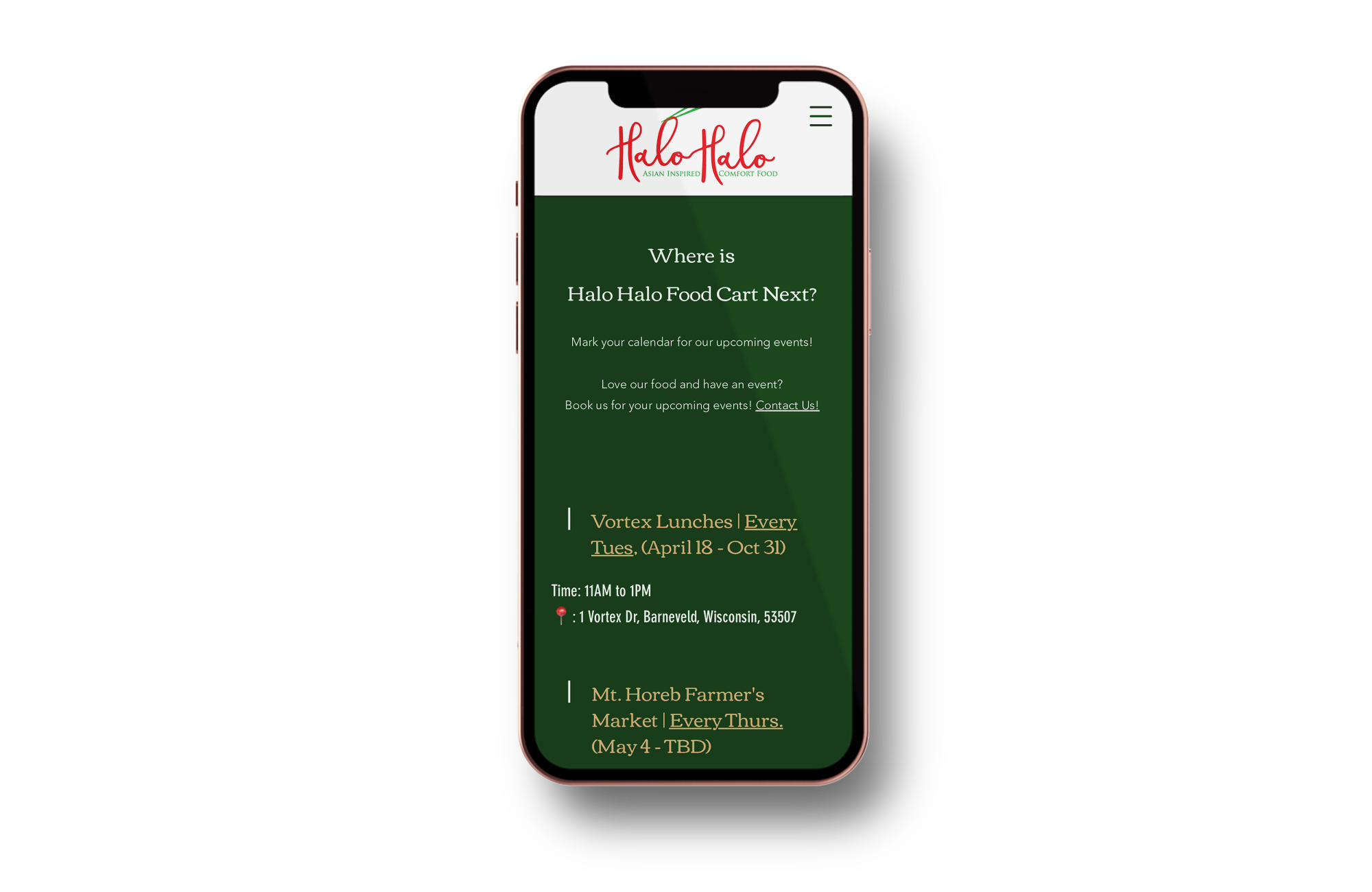 Strategic Edge: The user-friendly events page establishes a competitive advantage, showcasing a commitment to customer satisfaction and convenience that sets the food cart apart from competitors.